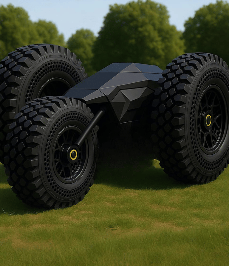 Produzimos UGVs com pneus airless, ideais para ambientes desafiadores e aplicações diversas.